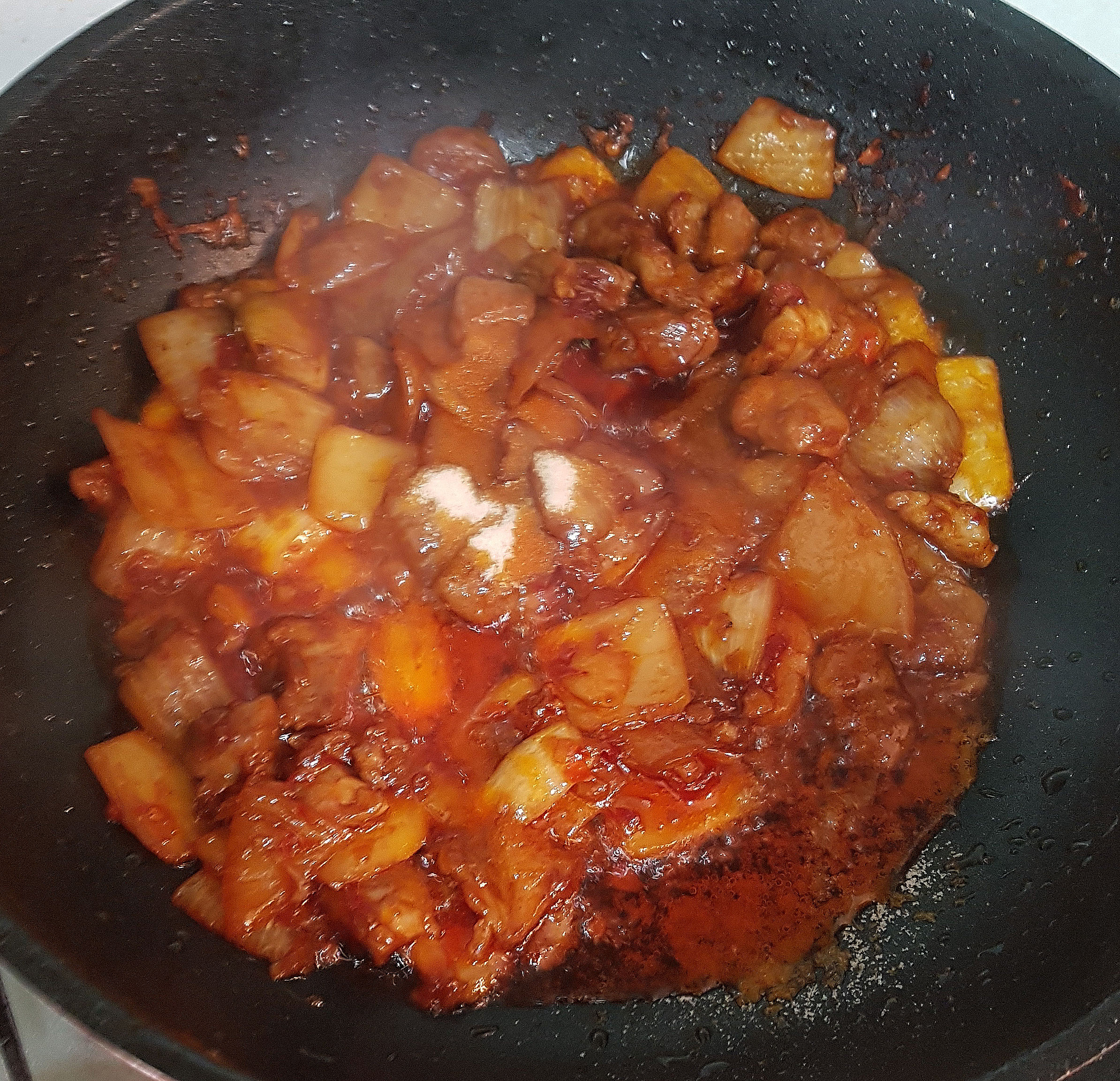 양파를 많이 준비하신 분들께서는 화력을 유지하기 위하여 양파를 2~3번에 걸쳐서 나눠 넣어주시는 것도 사천짜장이 죽처럼 되지 않을 좋은 방법이 될 수 있습니다