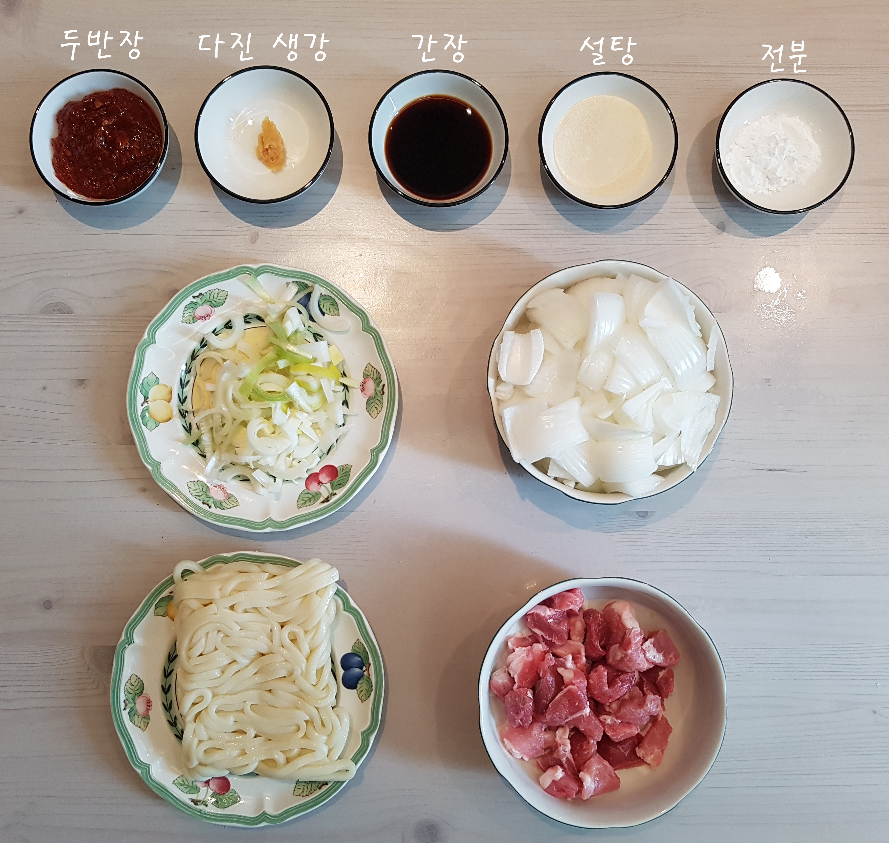 면 1인분(저는 우동 면을 준비하였지만 짜장면을 만드실 때에는 중화 면을 사용하시는 것이 가장 기본적인 면이며 비슷한 느낌으로 수타면의 느낌을 주기 위하여 칼국수 면을 사용하셔도 좋습니다 하지만 칼국수 면을 사용하실 때에는 반드시 전분을 물에 잘 씻어주어야 사천짜장을 만드는 과정에서 칼국수 면이 많이 끊겨있지 않습니다)