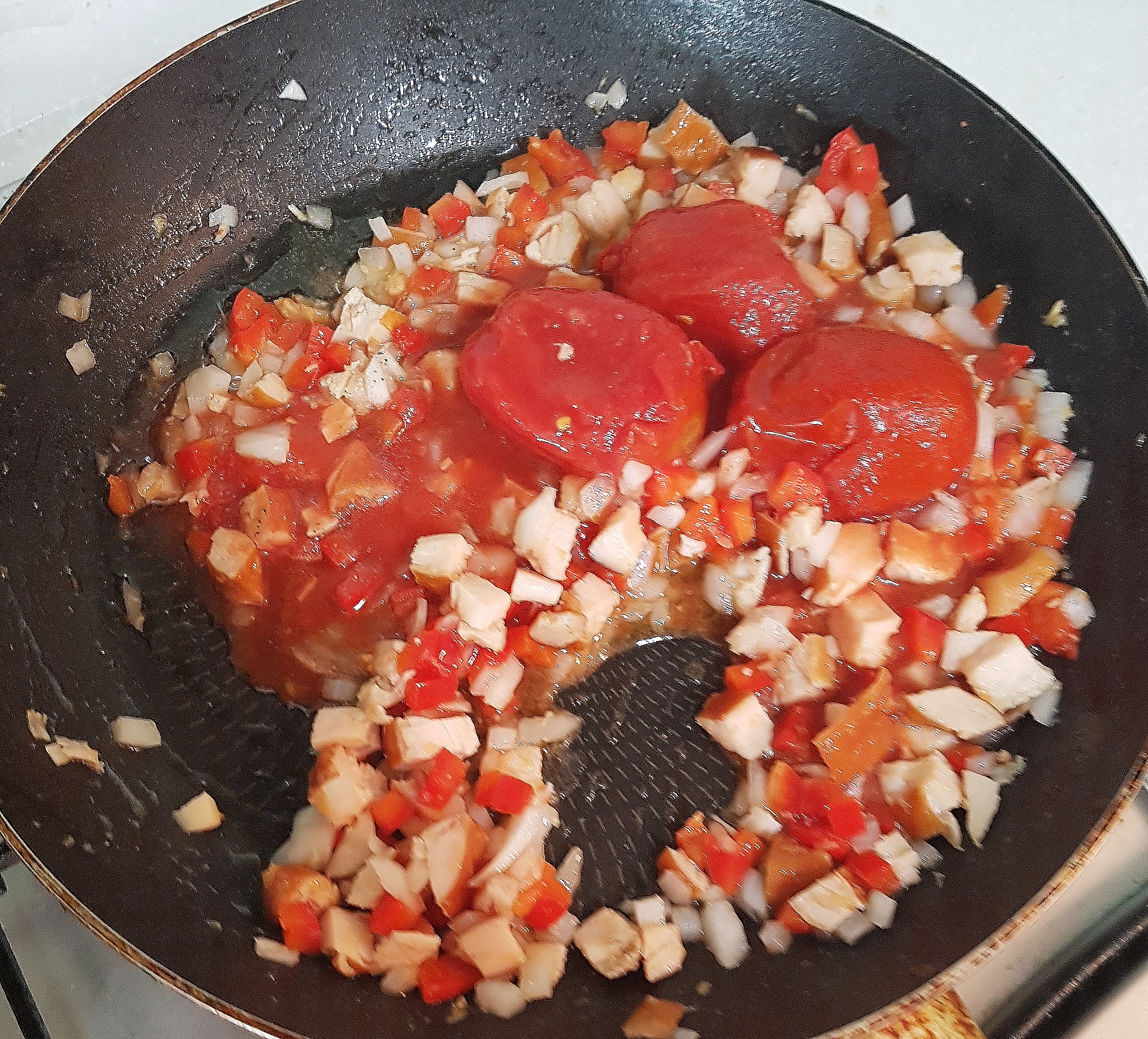 저처럼 토마토가 그대로 들어 있는 토마토소스를 사용해주시는 분들께서는 토마토를 가위로 잘라주시거나 토마토를 으깰 수 있는 도구를 사용하여 토마토를 으깨주시면서 볶아주세요